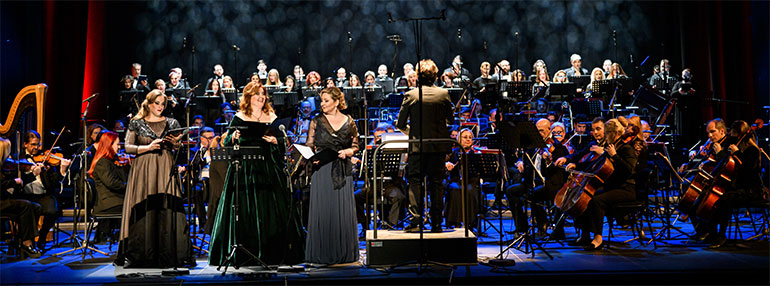 «Κάθε απόπειρα να δοθεί μια συνολική εικόνα των μεγάλων ρόλων της Κάλλας επί σκηνής μοιάζει με άθλο. Σε ηλικία μόλις δεκαπέντε ετών, η νεαρή Κάλλας θα κάνει το ντεμπούτο της στον εξόχως δραματικό ρόλο της Santuzza στην όπερα «Cavalleria Rusticana» (2 Απριλίου 1939, Θέατρο Ολύμπια). Η νεαρή τραγουδίστρια θα στραφεί στη συνέχεια στους ρόλους της λυρικής κολορατούρας, υπό την καθοδήγηση της δασκάλας της, Elvira de Hidalgo, καταξιωμένης εκπροσώπου του μπελ κάντο, και θα διαπρέψει, επενδύοντας τις ακραίες δεξιοτεχνικές απαιτήσεις με τη δραματική διάσταση του χαρακτήρα και αλλάζοντας για πάντα την τέχνη του τραγουδιού. Στο ενεργητικό της έρχονται να προστεθούν οι σπουδαίες ερμηνείες της στον Verdi και τον Puccini. Προκειμένου να αντιληφθούμε το εύρος τόσο του ρεπερτορίου όσο και της φωνής της (τρεις οκτάβες), τρεις εξαίρετες τραγουδίστριες ένωσαν τις δυνάμεις τους στη σκηνή του Ολύμπια: η λυρική κολορατούρα Klára Kolonits από την Ουγγαρία, που διαθέτει εντυπωσιακή δεξιοτεχνική άνεση στην ψηλή περιοχή, η νεαρή Ελληνίδα υψίφωνος Μαριτίνα Ταμπακοπούλου, που έκανε στο Ολύμπια το ελληνικό της ντεμπούτο, ερμηνεύοντας τον πρωταγωνιστικό ρόλο στον «Πρωτομάστορα» του Μανώλη Καλομοίρη, και η μεσόφωνος Karine Deshayes από τη Γαλλία, η οποία θριάμβευσε στο Φεστιβάλ της Aixen-Provence 2022 στη Norma, καθώς συνεχίζει να διευρύνει το ρεπερτόριό της ερμηνεύοντας ρόλους που έχουν σφραγίσει θρυλικές φωνές, όπως η Cornélie Falcon, η Isabella Colbran ή η ίδια η Κάλλας.