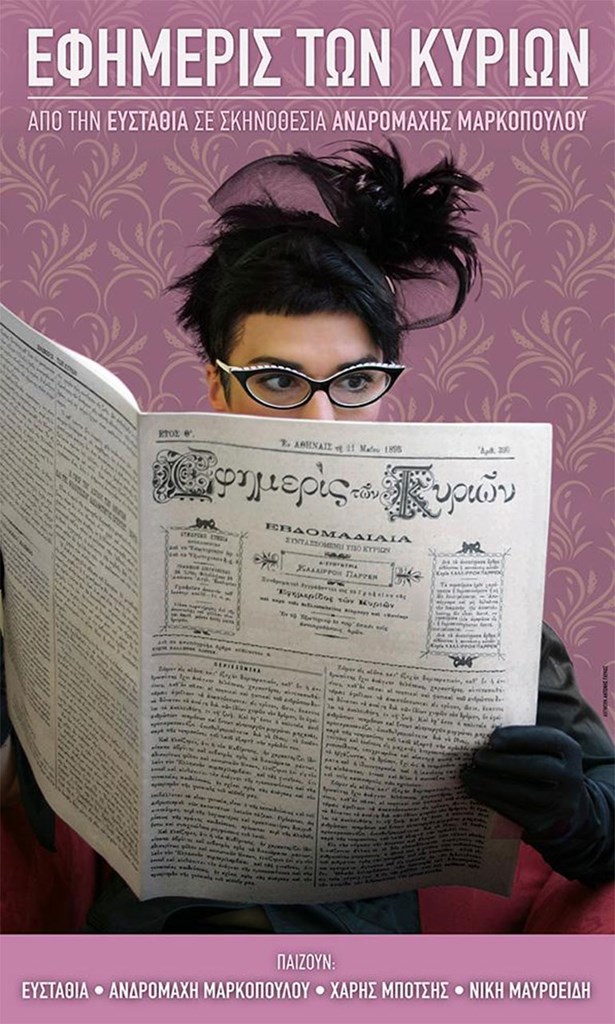 «Η Εφημερίς των Κυριών», που εξεδόθη για πρώτη φορά στις 8 Μαρτίου του 1887 από την Καλλιρρόη Παρρέν, ξαναδιαβάζεται από την Ευσταθία σε μια παράσταση μετά μουσικής. Η πρώτη εφημερίδα φτιαγμένη από γυναίκες για γυναίκες. Γυναίκες μιας άλλης εποχής, χωρίς βασικά δικαιώματα, μην έχοντας πρόσβαση στη μόρφωση και καμία εξουσία πάνω στον εαυτό τους.