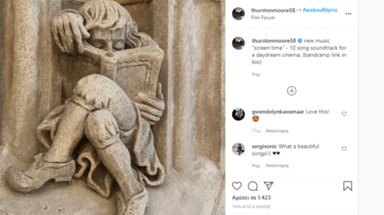 Καινούργιο άλμπουμ, instrumental album, κυκλοφόρησε ξαφνικά ο Thurston Moore. Το Screen Time είναι διαθέσιμο στο Bandcamp και το πρώην μέλος των Sonic Youth ανήγγειλε το πρότζεκτ στο Twitter γράφοντας «Καινούργια μουσική του Thurston Moore “ screen time” (10 τραγούδια)».