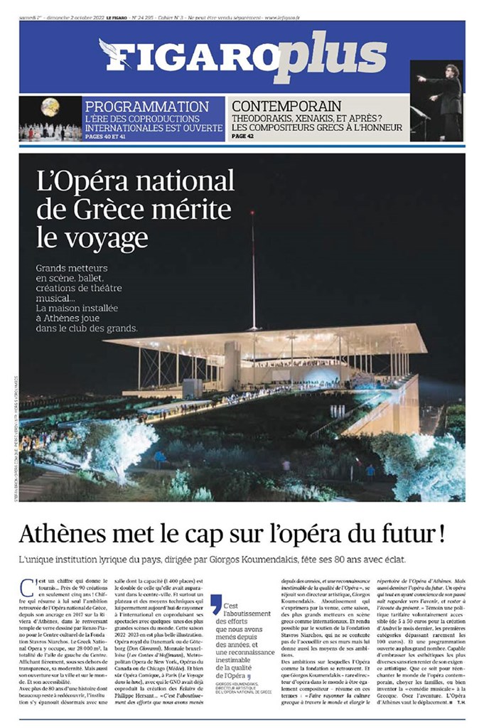 Σε δημοσίευμα υπό τον τίτλο «Η Αθήνα βάζει πλώρη για την όπερα του μέλλοντος!» η γαλλική εφημερίδα Le Figaro αναφέρεται στα 80 χρόνια της Λυρικής Σκηνής στην Ελλάδα.