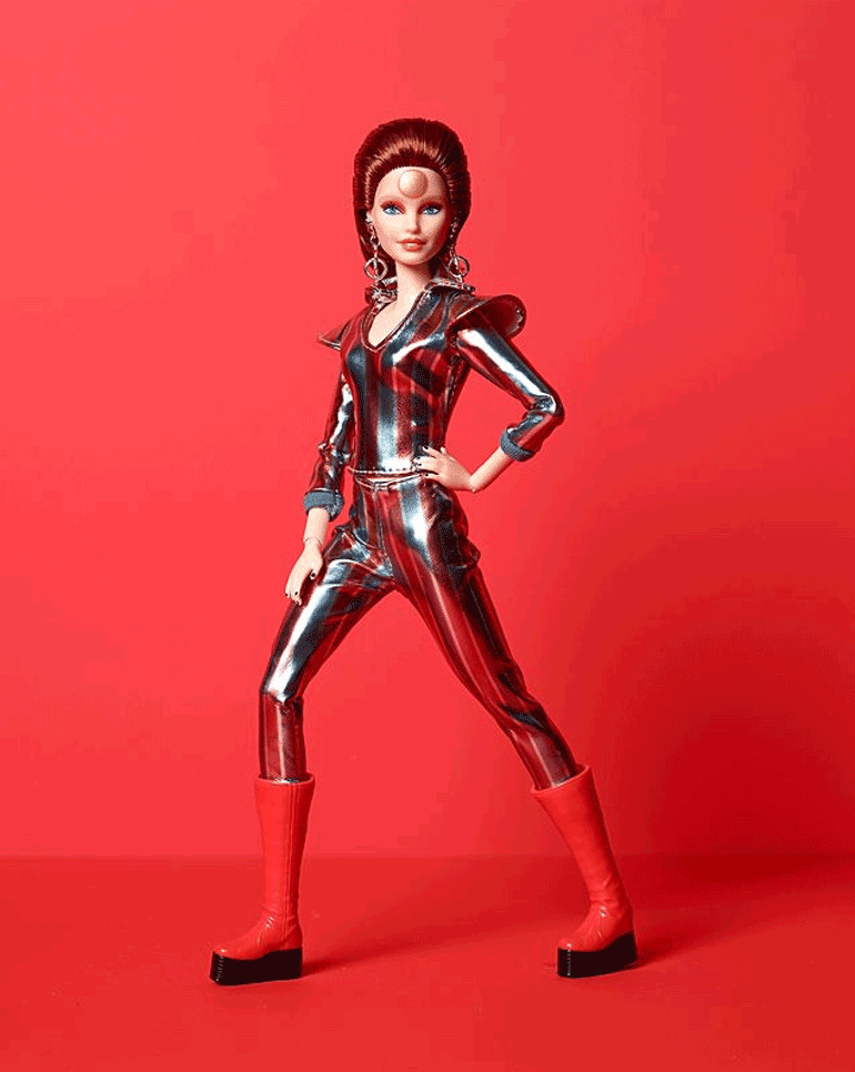 Η κατασκευάστρια εταιρεία παιχνιδιών Mattel ανακοίνωσε την κυκλοφορία της νέας κούκλας Μπάρμπι, η οποία θα είναι ο Ντέιβιντ Μπάουι ντυμένος με το κοστούμι του Ζίγκι Στάρνταστ.