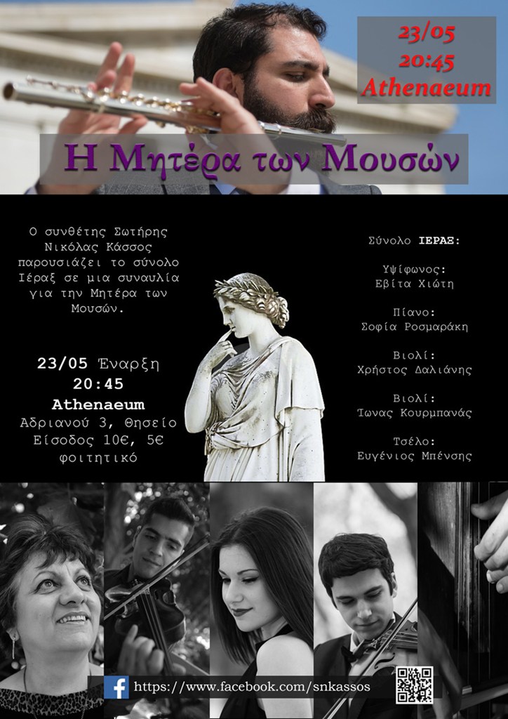 Με αφορμή την Παγκόσμια Ημέρα Πολιτισμού (21/5) ο Σωτήρης- Νικόλας Κάσσος και το μουσικό του σύνολο «Ιέραξ» παρουσιάζουν τη «Μητέρα των Μουσών», μια συναυλία εξαιρετικά αφιερωμένη στη Μνημοσύνη.