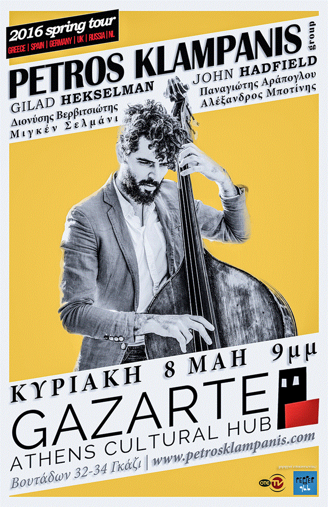 Προερχόμενος από την άλλη πλευρά του Ατλαντικού…ο Έλληνας κορυφαίος μουσικός και – σύμφωνα με το περιοδικό JazzTimes – έξοχος μπασίστας και συνθέτης Πέτρος Κλαμπάνης – εμφανίζεται για πρώτη φορά μαζί με το προσωπικό του 6μελές γκρουπ στο Gazarte.