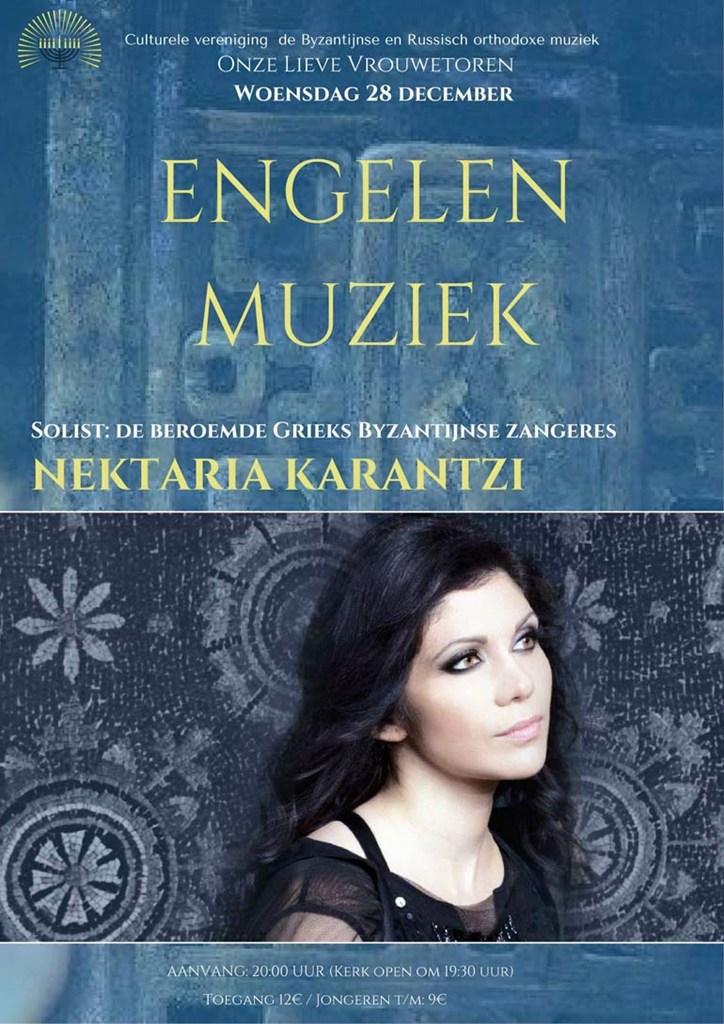 Στην Ολλανδία θα βρεθεί για δύο ξεχωριστές συναυλίες με χρώμα βυζαντινών Χριστουγέννων η καταξιωμένη ερμηνεύτρια του ιερού μέλους και της Παράδοσης Νεκταρία Καραντζή. Οι συναυλίες θα πραγματοποιηθούν στο Άμερσοφτ και την Ουτρέχτη στις 28 και 29 Δεκεμβρίου και διοργανώνονται από το Ολλανδικό πολιτιστικό ίδρυμα μελέτης της Βυζαντινής και Ρωσικής Μουσικής.