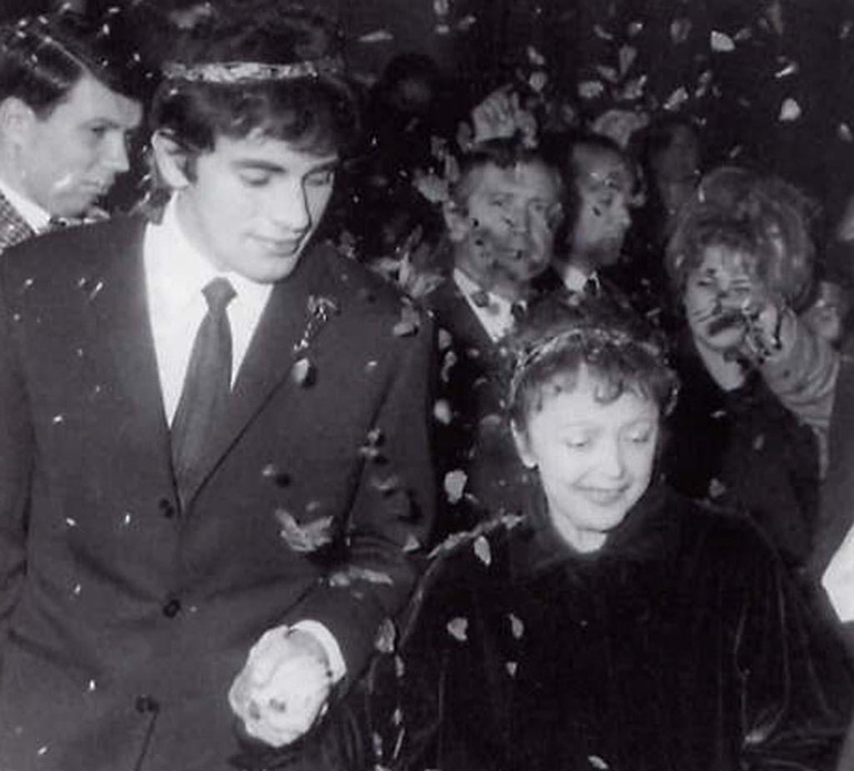 Το 1952 θα παντρευτεί για πρώτη φορά, τον συμπατριώτη της ηθοποιό και τραγουδιστή Ζακ Πιλς (1906-1970), με κουμπάρα τη Μάρλεν Ντίτριχ. Το ζευγάρι θα χωρίσει το 1957, χωρίς να αποκτήσει παιδιά. Στις αρχές της δεκαετίας του ’60 η Εντίθ Πιάφ θα γνωρίσει τον Έλληνα κομμωτή και τραγουδιστή Θεοφάνη Λαμπούκα (1936-1970), είκοσι χρόνια μικρότερό της. Θα τον ερωτευτεί παθιασμένα και θα παντρευτούν το 1962. Η Πιάφ θα του δώσει το παρατσούκλι Τεό Σαγαπό (Theo Sarapo στα γαλλικά), με το οποίο θα γίνει γνωστός ως τραγουδιστής στο γαλλικό κοινό.