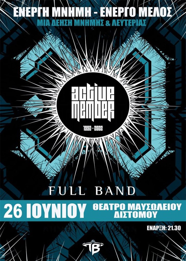 Την Κυριακή 26 Ιουνίου, στις 9:30 μμ, οι Active Member θα εμφανισθούν με συνοδεία ορχήστρας, στο αμφιθέατρο του Μαυσωλείου στο Δίστομο για μια συναυλία εφ’ όλης της ύλης. Στη συναυλία, που είναι ενταγμένη στις επετειακές εκδηλώσεις για την Σφαγή του Διστόμου, θα γίνει ένα οδοιπορικό στη μεγάλη δισκογραφία του γκρουπ, μια γιορτή όπου οι γενιές συναντώνται με έναν κοινό κώδικα και βρίσκουν στέρεο πέρασμα για τη συνέχεια μέσα από τη μουσική και τα λόγια του γκρουπ.