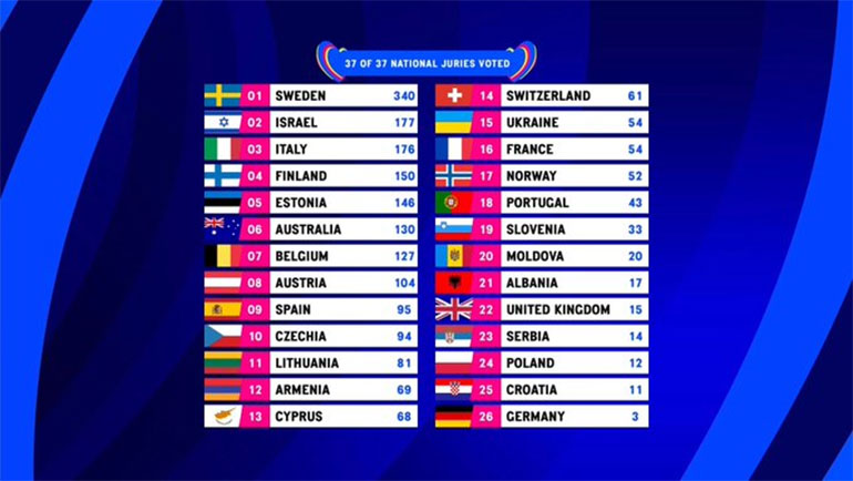 Μεγάλη νικήτρια η Σουηδία με την Loreen με 583 βαθμούς