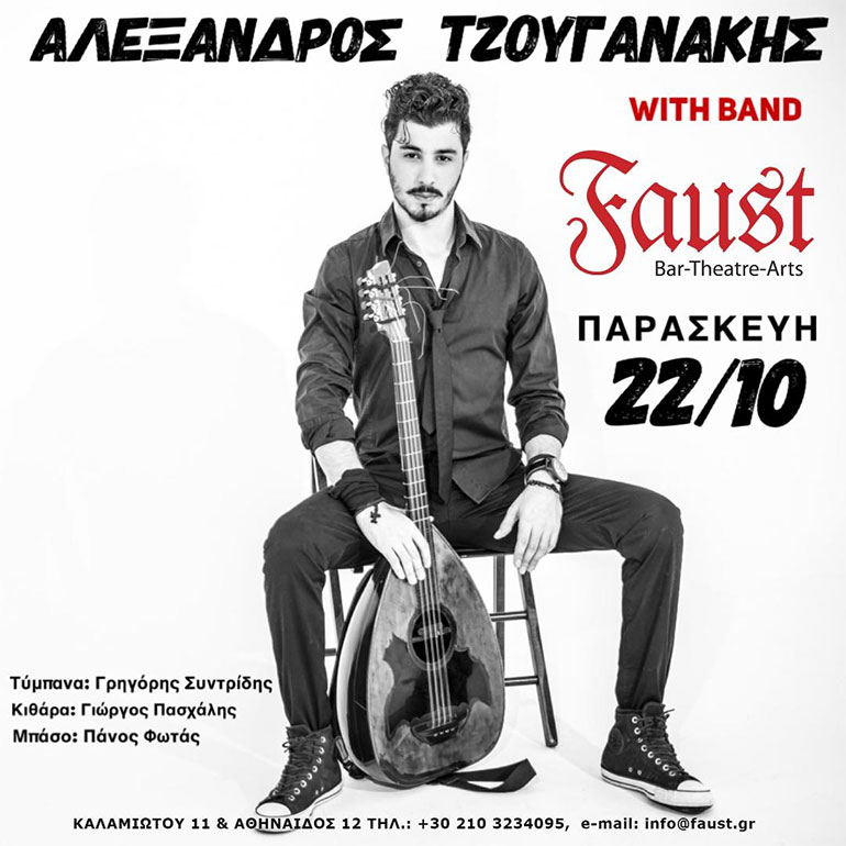 Ο Αλέξανδρος με τους εξαιρετικούς μουσικούς του φίλους θα μας χαρίσουν ένα μοναδικό μουσικό βράδυ στην μαγική σκηνή του Faust.