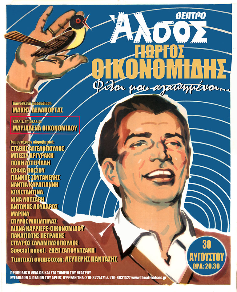 Μια μεγάλη συναυλία-αφιέρωμα για τον αγαπημένο κονφερασιέ, ηθοποιό, ποιητή, συγγραφέα και τραγουδιστή Γιώργο Οικονομίδη, θα πραγματοποιηθεί, την Τετάρτη 30 Αυγούστου στο θέατρο Άλσος, από την κόρη του Μαριαλένα Οικονομίδου, σε σκηνοθεσία και παρουσίαση του Μάκη Δελαπόρτα.