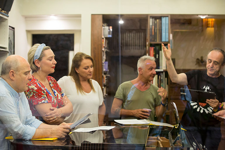 Στις 15 και 16 Ιουλίου, στο Ηρώδειο, θα ακούσουμε τραγούδια που γράφτηκαν για ιστορικές θεατρικές παραστάσεις,όπως: «Συντροφιά με τον Μπρεχτ» σε σκηνοθεσία ΖυλΝτασσέν, «ΦουέντεΟβεχούνα» σε σκηνοθεσία Γιώργου Μιχαηλίδη, «Ο γέρος της Αλεξάνδρειας» σε σκηνοθεσία Ανρί Ρονς, «Βίκτωρ Βικτώρια» σε σκηνοθεσία Γιώργου Ρεμούνδου, «Δον Κιχώτης» σε σκηνοθεσίαΓιάννη Καραχισαρίδη, «Ειρήνη» σε σκηνοθεσία Σπύρου Ευαγγελάτου, «Αρχοντοχωριάτης» σε σκηνοθεσία Θέμη Μουμουλίδηκ.ά.Επίσης, μουσικές που έντυσαν στίχους του Κ. Π. Καβάφη, του ΜάνουΕλευθερίου, του ΜπάμπηΤσικληρόπουλου, της ΑγαθήςΔημητρούκα, του ΟδυσσέαΙωάννου και πολλών άλλων.