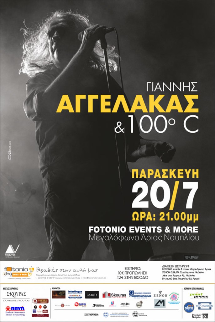Mια μοναδική εμφάνιση θα κάνουν ο Γιάννης Αγγελάκας και οι 100°C την Τετάρτη 20 Ιουλίου στις 21.00, στο πλαίσιο του φεστιβάλ που διοργανώνει το Fotonio Events & More στο Ναύπλιο «Βραδιές στην αυλή μας».