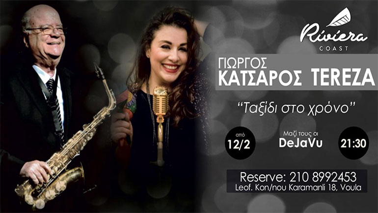 Ο μεγάλος συνθέτης-μαέστρος Γιώργος Κατσαρός με αμέτρητες μελωδίες στο σαξόφωνο, και η Ελληνοαμερικανίδα Performer Tereza με την αισθαντική φωνή της μας μαγεύουν σε ένα multilingual Show, στο υπέροχο Riviera Coast μαζί & το duet DeJaVu.»