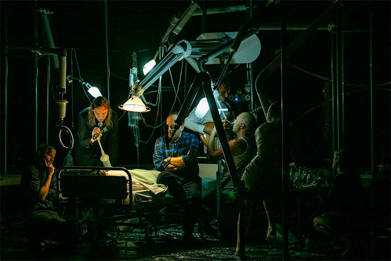 «Τα εσωτερικά όργανα στο κείμενο ως ρόλοι παραμένουν μέρος του και πάσχουν από αυτό. Μάλιστα γίνονται και πολύ μικροπρεπή, ένα επίσης πολύ ενδιαφέρον και ελαφρύ στοιχείο, όπως οι μικροπολιτικές μεταξύ τους πολύ αστείες κι αυτές. Γενικότερα υπάρχει ένα παιχνίδι εξουσίας πολύ αστείο. Τα όργανα αυτά όμως χάσκουν, γιατί με τον θάνατο της γυναίκας θα πεθάνουν. Τα τρία από τα έξι όργανα του έργου θα αντιμετωπίσουν τον θάνατο. Αυτό που θέλουμε να πετύχουμε μέσω της μουσικής είναι να μπούμε μέσα στο ανθρώπινο σώμα. Να βρεθούμε μέσα σε έναν εσωτερικό χώρο με ελάχιστο φως, όπως αν μπορούσαμε να μπούμε στο δικό μας σώμα. Γιατί όλα τα όργανά μας παράγουν συχνότητες και μουσικές», σημειώνει ο Χρήστος Πασσαλής.