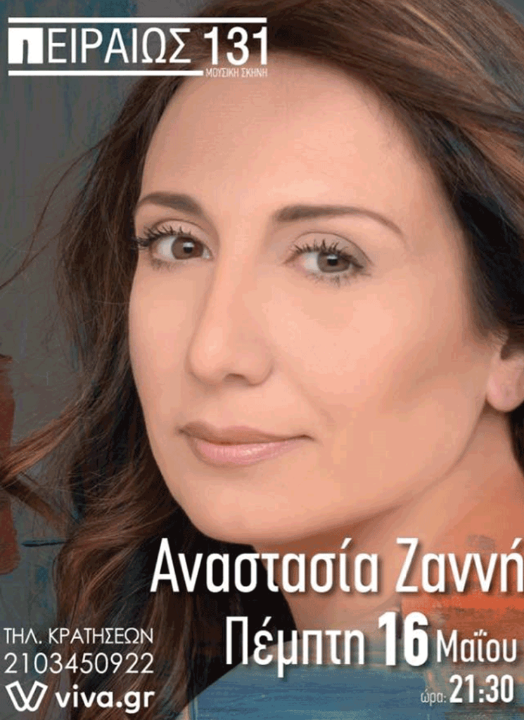 Η Μουσική Σκηνή-Πειραιώς 131, στο Γκάζι, την Πέμπτη 16 Μαΐου, φιλοξενεί την Αναστασία Ζαννή. Την Eλληνίδα σοπράνο που ταξιδεύει σε όλο τον κόσμο με συναυλίες, δημιουργώντας μία πλούσια συλλογή από τραγούδια και εμπειρίες.