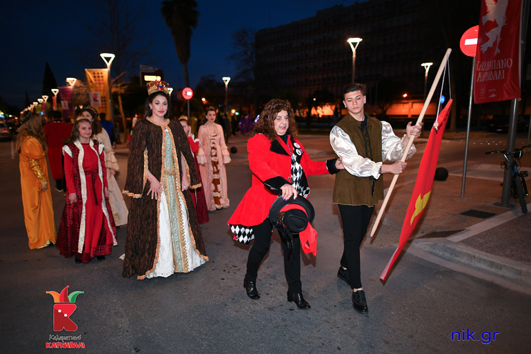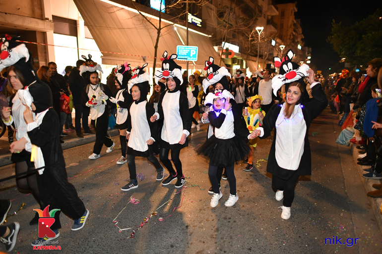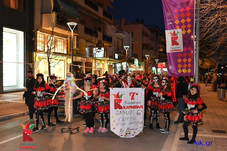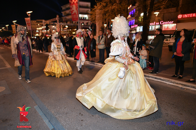 Το Σάββατο 9 Μαρτίου πραγματοποιήθηκε η μεγάλη νυχτερινή παρέλαση του 7ου Καλαματιανού Καρναβαλιού. Τα γκρούπ ξεκίνησαν από το τέρμα της οδού Αριστομένους και ανεβαίνοντας ανάποδα την κεντρική οδό της Καλαμάτας… χορεύοντας εννοείται, αφού σε όλη τη διαδρομή υπήρχαν ήδη στημένα τα μεγάφωνα που έπαιζαν δυνατά μουσική, κατέληξαν στην Πλατεία 23ης Μαρτίου. Εκεί στο stage τους περίμεναν οι παρουσιαστές της βραδιάς Φωτεινή Ψυχίδου, Άστρη Μαυρέα και Σωτήρης Γεωργούντζος, που μετέδιδαν τον παλμό. Τη μουσική επιμέλεια της βραδιάς είχαν οι επαγγελματίες djs Γιώργος Χαντζής και dj KOSTO οι οποίοι με τις επιλογές τους έκαναν τον κόσμο να χορεύει συνέχεια.