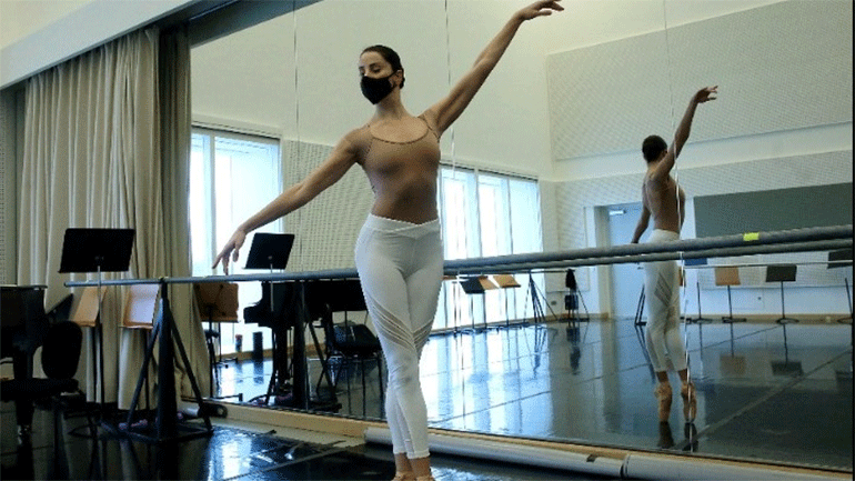 Για τη Μαργαρίτα Κώστογλου, χορεύτρια και μέλος του corps de ballet της Εθνικής Λυρικής Σκηνής, η καθημερινότητα δεν έχει αλλάξει πολύ: μάθημα, προθέρμανση και πρόβες εξακολουθούν να είναι στο πρόγραμμα. Με διαφορετικούς όρους, όμως. Συχνά τεστ, μικρότερες ομάδες χορευτών ανά αίθουσα και πρόβες που, όταν δεν απαιτείται έντονη σωματική άσκηση, «απαιτούν» τη χρήση μάσκας. Παρ’ όλα αυτά, όμως, η αισιοδοξία παραμένει, όπως και το βλέμμα στο μέλλον που η συνθήκη των κλειστών θεάτρων θα έχει παρέλθει. «Είμαστε χαρούμενοι, γιατί κάνουμε πρόβες και είμαστε δημιουργικοί», σημειώνει μιλώντας στο ΑΠΕ-ΜΠΕ «και το καλό είναι ότι θα έχουμε έτοιμα πράγματα για μετά. Ανυπομονούμε να βγουν προς τα έξω όσα ετοιμάζουμε».
