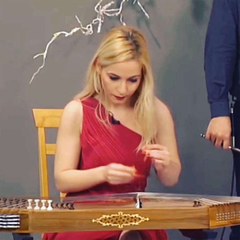 Η ταλαντούχα Κυριακή Δερέμπεη με κέφι και γιορτινή διάθεση άλλη μια φορά κέρδισε τις εντυπώσεις με τη φωνή της, το σαντούρι της και τη σκηνική της παρουσία.