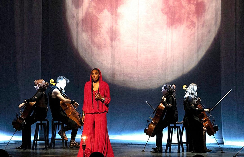 Μια παράσταση όπου οι μόνοι πρωταγωνιστές είναι η μαγική, γήινη φωνή της και 8 τσέλο που την συνοδεύουν σε ένα μοναδικό κοντσέρτο για φωνή και έγχορδα. Όπως λέει η ίδια το τσέλο όχι μόνο είναι κοντά στην ανθρώπινη φωνή αλλά έχει και γυναικείες καμπύλες.