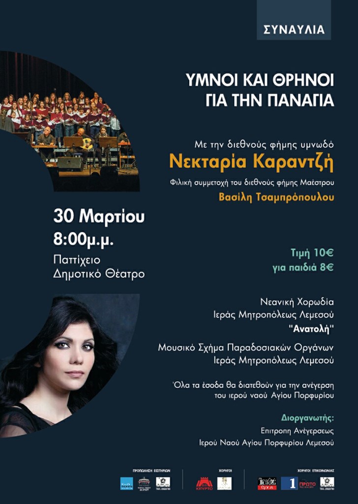 *Η Νεκταρία Καραντζή θα ψάλει επίσης στη Μητρόπολη της Λεμεσού στις ακολουθίες των Τρίτων Χαιρετισμών και του Όρθρου και της Θείας Λειτουργίας την Κυριακή της Σταυροπροσκυνήσεως.