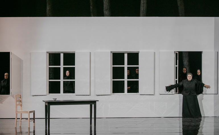 Η σκηνοθέτρια, με βασικό συνεργάτη στα σκηνικά και τα κοστούμια τον διεθνώς αναγνωρισμένο Γιώργο Σουγλίδη, προτείνει μια κλασική ανάγνωση του έργου και βλέπει τον ωμό ρεαλισμό της ιστορίας μέσα από μια ποιητική διάσταση. Το βασικό στοιχείο του σκηνικού είναι ένα λευκό σπίτι «εγκλωβισμένο» μέσα στο δάσος, όπως προβλέπει το έργο, σαν μια αναφορά στην κλειστοφοβική ατμόσφαιρα και τους αυστηρούς κανόνες τις κοινωνίας, από τους οποίους κανείς δεν ξεφεύγει. Όσο το έργο εξελίσσεται, το σπίτι αλλάζει μορφές και τελικά διαλύεται. Τα κοστούμια έχουν επιρροές από τη μοραβική ύπαιθρο, ενώ στην παραγωγή θα χρησιμοποιηθούν και εντυπωσιακά παραδοσιακά τσέχικα κοστούμια. Την κινησιολογία υπογράφει ο διακεκριμένος χορευτής και χορογράφος Φώτης Νικολάου, ενώ οι φωτισμοί είναι του αναγνωρισμένου Γάλλου Νταβίντ Ντεμπριναί.
