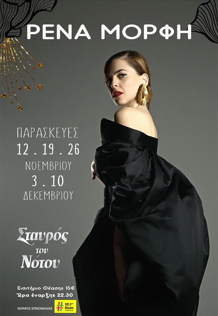 Η Ρένα Μόρφη, η ερμηνεύτρια με τα χίλια πρόσωπα θα εμφανιστεί στον Σταυρό του Νότου τις Παρασκευές, 12-19 & 26 Νοεμβρίου, 3 & 10 Δεκεμβρίου.
