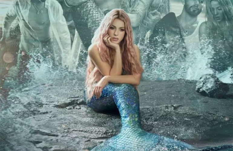 Είναι μία συνεργασία με τον Κολομβιανό τραγουδιστή Μανουέλ Τουρίσο και στο βίντεο που μοιράστηκε η σταρ στο Ιnstagram «μεταμορφώνεται» σε γοργόνα με πλούσια ροζ μαλλιά και μακριά ουρά καθώς αιωρείται με τα χέρια της δεμένα στο στήθος.
