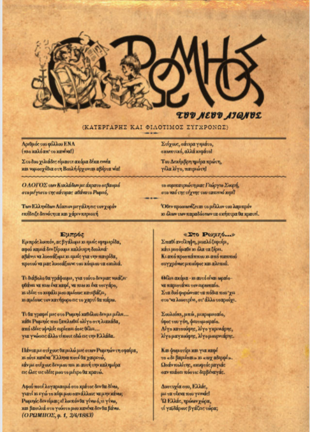 Η εφημερίδα περιλαμβάνει βιογραφικό και χαρακτηριστικά ποιήματα του ιδίου, αλλά και νέους έμμετρους στίχους, συνυφασμένους με το ύφος και το πνεύμα του, που σατιρίζουν τη σύγχρονη πραγματικότητα, καταγράφοντας έτσι τη διαχρονικότητά του, ενώ στο φουαγιέ του θεάτρου «Απόλλων» θα λειτουργεί συλλογή με αυθεντικές εφημερίδες του «Ρωμηού», που κυκλοφόρησε συνολικά 1.444 φύλλα και δύο παραρτήματα, καλύπτοντας μια ιστορική περίοδο από το 1883 έως και το 1918.