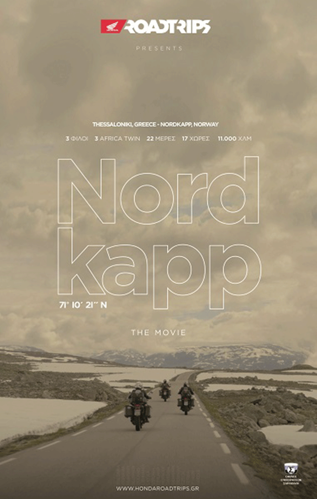 Η ταινία «Nordkapp The Movie» είναι μέρος του καινοτόμου προγράμματος Honda Roadtrips με αφορμή την έλευση της νέας Africa Twin στην Ελληνική αγορά. Το κοινό θα έχει την ευκαιρία να απολαύσει ολόκληρη την ταινία διαδικτυακά από τις 20 Νοεμβρίου στις 21.00 στην ηλεκτρονική διεύθυνση www.hondaroadtrips.gr . Η www.hondaroadtrips.gr αποτελεί την πρώτη διαδικτυακή πλατφόρμα που φτιάχτηκε από ανθρώπους που αγαπούν τη μοτοσυκλέτα για ανθρώπους που τολμούν να κάνουν τα όνειρά τους πραγματικότητα. Μέσα από την www.hondaroadtrips.gr οι φίλοι των 2 τροχών έχουν την ευκαιρία να γνωρίσουν την κουλτούρα της αληθινής περιπέτειας, να εμπνευστούν και να τολμήσουν να κάνουν πραγματικότητα τα ταξίδια που πάντα ονειρευόντουσαν.