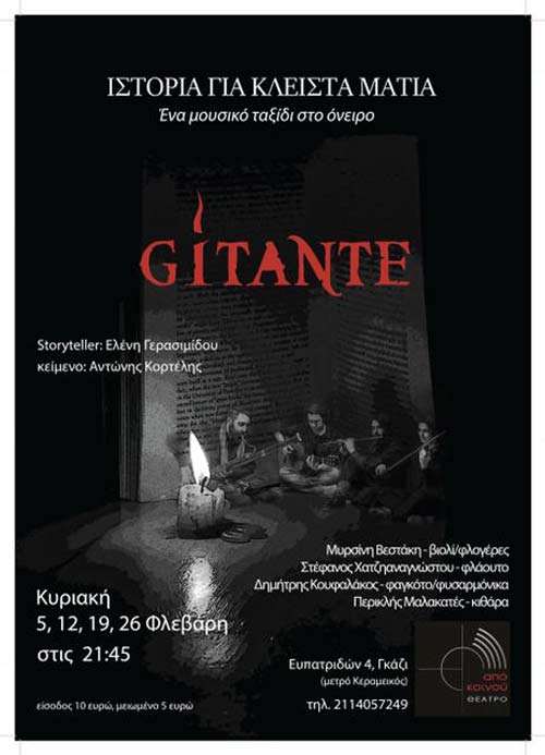 Οι Gitante με την Ελένη Γερασιμίδου στον ρόλο του αφηγητή, παρουσιάζουν ένα ταξίδι στο όνειρο, με όχημα την ορχηστρική μουσική τους, που ενώνει την παράδοση των λαών με την κλασική μουσική δωματίου και τη τζαζ.
