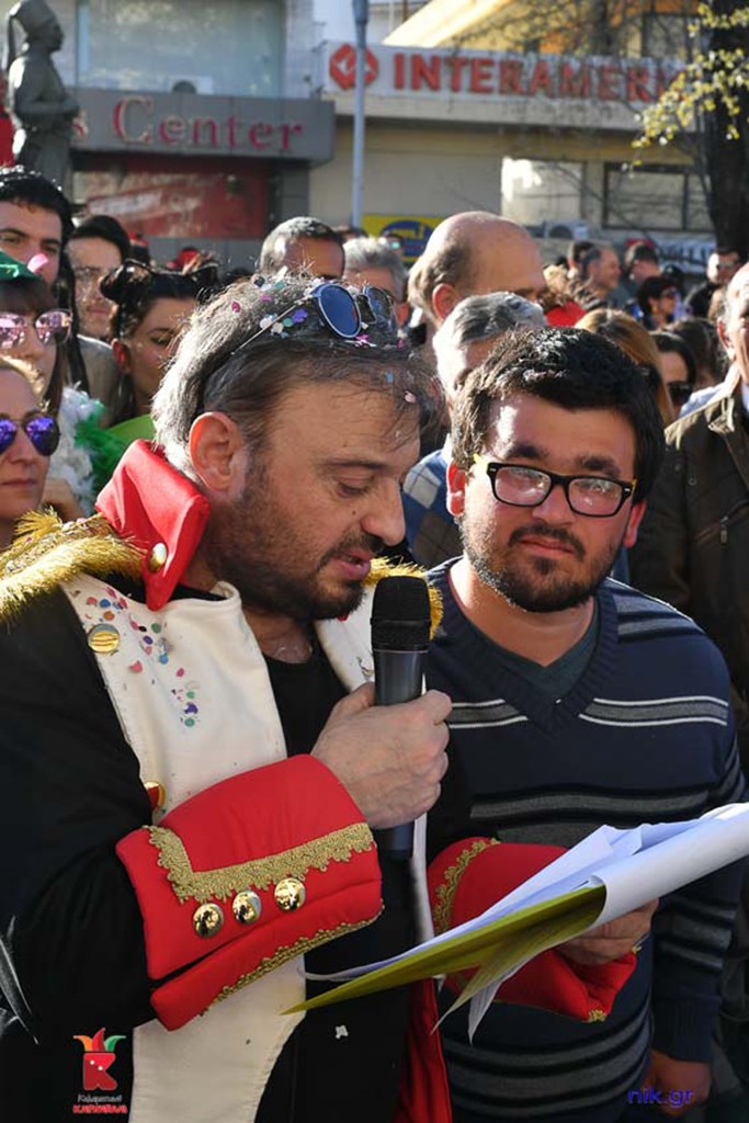 Στο ύψος του Πνευματικού Κέντρου ο βασικός παρουσιαστής Χρήστος Φερεντίνος αρκετά ευδιάθετος μετέδιδε τα όσα γίνονταν, μιλούσε και αστειευόταν  με τους καρναβαλιστές και με τον κόσμο. Από τον εξώστη του Πνευματικού Κέντρου ο Δήμαρχος Καλαμάτας, κύριος Παναγιώτης Νίκας  χαμογελαστός και πρόσχαρος παρακολουθούσε την παρέλαση και πετούσε σοκολάτες στον κόσμο.  Στην μουσική επιμέλεια της παρέλασης ήταν οι djs Νάσος Παπατζιμόπουλος και Klimen οι οποίοι με τις μουσικές τους επιλογές ξεσήκωναν τον κόσμο.