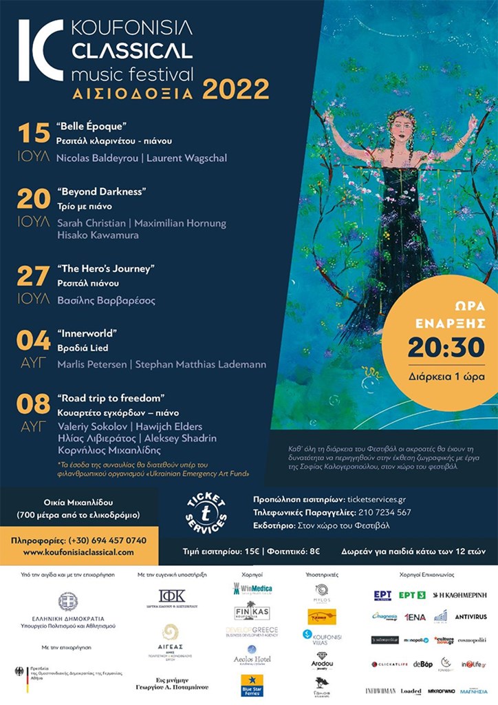 Σπουδαίους μουσικούς από την Ελλάδα και το εξωτερικό θα φιλοξενήσει το φετινό Φεστιβάλ Κλασικής Μουσικής Κουφονησίων, που διοργανώνεται για έβδομη συνεχή χρονιά, από τις 15 Ιουλίου έως τις 8 Αυγούστου, στο προαύλιο της Οικίας Μιχαηλίδου, στο Άνω Κουφονήσι.