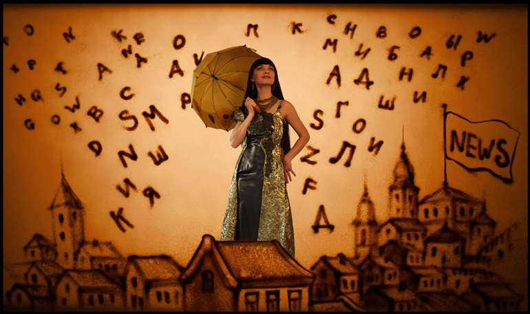Το 2009 η Ουκρανέζα Ξένια Σιμόνοβα άφησε άφωνους 13.000.000 τηλεθεατές, «αφηγούμενη» την ιστορία της πατρίδας της με μια νέα τέχνη που έμελλε να γίνει παγκόσμια γνωστή: sand animation, αλλιώς το σμίλεμα, η «εμψύχωση» της άμμου. Τα οπτικοακουστικά αριστουργήματά της, μικρά έργα τέχνης που η Σιμόνοβα δημιουργεί επάνω στην άμμο με τα χέρια της υπό τη συνοδεία μουσικής μπροστά στα μάτια των θεατών, έρχονται τώρα στο Μέγαρο.