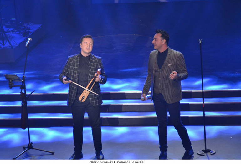 Στιγμή έκπληξη της Έλενας Παπαρίζου να τραγουδάει το my Number one υπό τους ήχους της ποντιακής λύρας του Κωσταντίνου και Ματθαίου Τσαχουριδη.