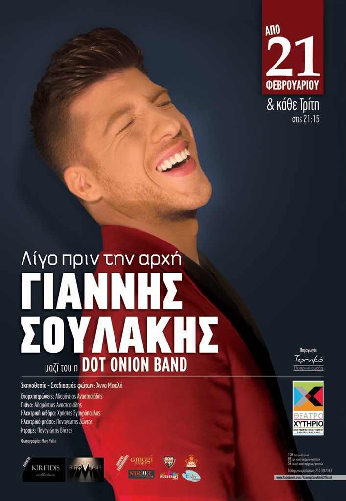 Μετά την πολύχρονη καλλιτεχνική του πορεία, ο Γιάννης Σουλάκης «Λίγο πριν την αρχή» έχει ετοιμάσει ένα μουσικό πρόγραμμα με επιρροές από ξένο και ελληνικό ρεπερτόριο και παράλληλα παρουσιάζει νέα τραγούδια συνεργατών του.