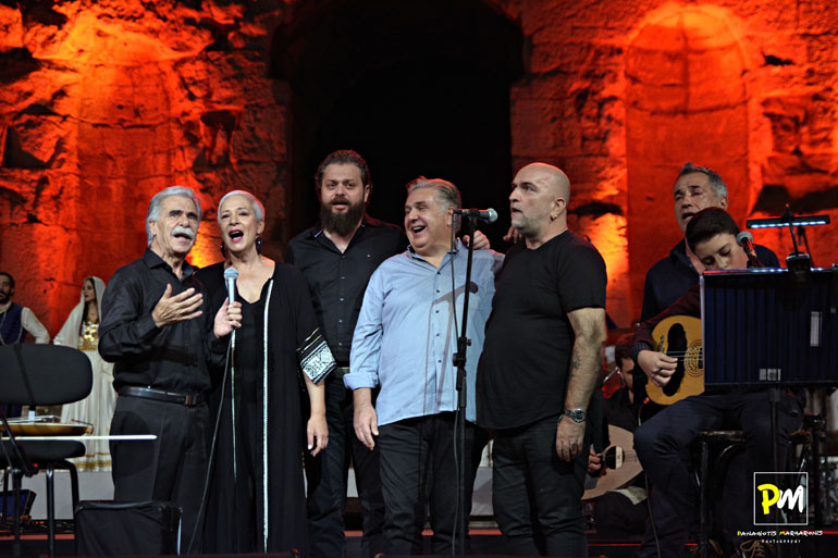 Δίπλα του εξαιρετικοί φίλοι και συνεργάτες που τραγούδησαν μαζί του σ’ αυτή την ξεχωριστή βραδιά. Η Μελίνα Κανά, ο Μπάμπης Στόκας, ο Παντελής Θαλασσινός, ο Γιώργος Νικηφόρου Ζερβάκης αλλά και ο εγγονός του Βασίλη Σκουλά που συγκέντρωσε θερμό χειροκρότημα.
