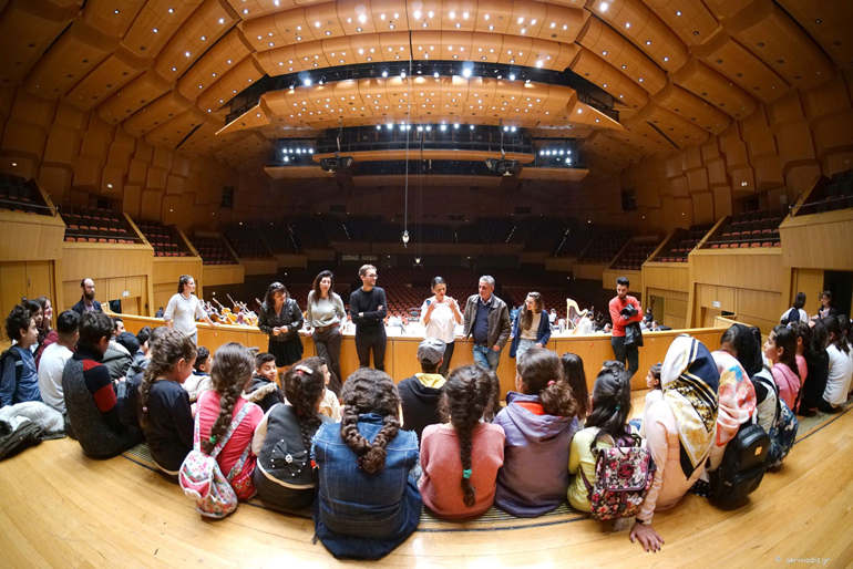 Mέσα από μια σημαντική κοινωνική και εκπαιδευτική πρωτοβουλία, την Τετάρτη 7 και την Πέμπτη 8 Μαρτίου, το Μέγαρο προσέφερε τη δυνατότητα σε 50 παιδιά από τον καταυλισμό προσφύγων του Σκαραμαγκά να γνωρίσουν από κοντά τους μουσικούς της Φιλαρμονικής Ορχήστρας της Γαλλικής Ραδιοφωνίας και τον Φιλανδό μαέστρο της Μίκκο Φρανκ, που είναι πρεσβευτές της UNICEF, καθώς και τους πιανίστες Κάτια Μπουνιατισβίλι και Γιώργο – Εμμανουήλ Λαζαρίδη. Η δράση πραγματοποιήθηκε με την ευκαιρία των δύο συναυλιών τους στο ΜΜΑ (7 & 8/3), σε συνεργασία με την Ορχήστρα και το Εl Sistema Greece. Το πρόγραμμα της διήμερης δράσης παρακολούθησαν εκπρόσωποι της εταιρείας Ελληνικά Πετρέλαια, χορηγού των συναυλιών της Ορχήστρας στο Μέγαρο.