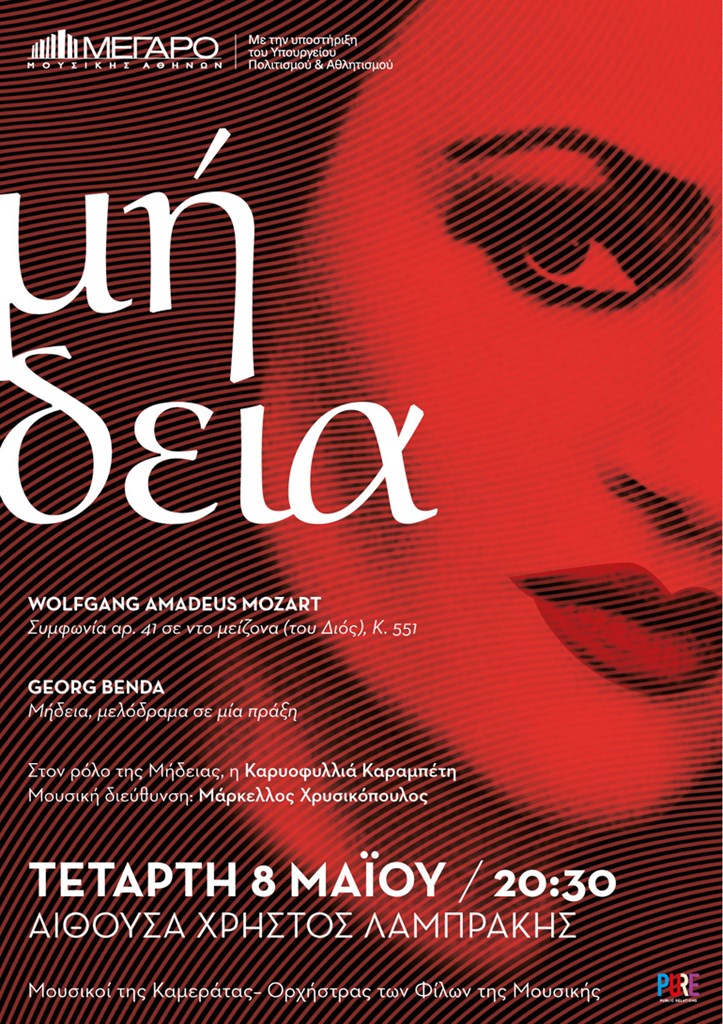 Στη συναυλία αυτή, το κοινό θα έρθει πιο κοντά στον δωρικό συμφωνικό ήχο του 18ου αιώνα μέσα από το ηχόχρωμα των οργάνων εποχής του φημισμένου συνόλου και θα ανακαλύψει το μονόπρακτο μελόδραμα Μήδεια του τσέχου συνθέτη Georg Benda [Γκέοργκ Μπέντα], που έζησε στα χρόνια του Μότσαρτ, στο οποίο πρωταγωνιστεί η Καρυοφυλλιά Καραμπέτη, μια από τις σπουδαιότερες σύγχρονες θεατρικές Μήδειες. H διακεκριμένη ηθοποιός θα ερμηνεύσει τον ρόλο σε δική της μετάφραση στα ελληνικά.