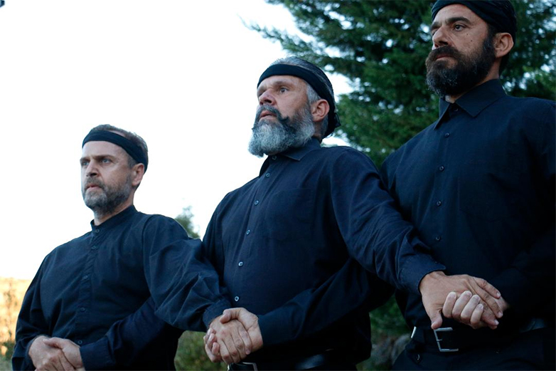 Πολύτιμο στοιχείο της παράστασης και σπάνια ευκαιρία να ακούσει κανείς την τέχνη της Χορωδίας των Ψαλτών, υπό τη διεύθυνση του Μουσικολογιωτάτου Αρχιμανδρίτη Ειρηναίου Νάκου, ο οποίος με την γνήσια βυζαντινή εξαιρετικής εμβέλειας φωνή του, θα συνδυάσει την υμνολογία με την τέχνη του κορυφαίου Μίκη Θεοδωράκη. Οι ψάλτες θα μας μεταφέρουν στην σκηνή του Ηρωδείου, κλασικούς Βυζαντινούς Ύμνους και θα έρθουν σε μουσικό διάλογο με τους κοσμικούς ερμηνευτές.