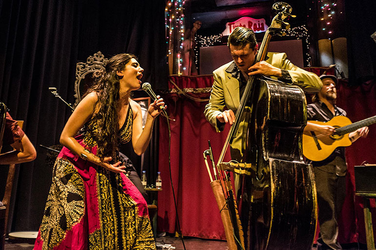 Στη συναυλία συμμετέχει ως guest και η Ισπανίδα τραγουδίστρια Sandra Sangiao, γνωστή στο ευρύ κοινό από την μπάντα της BGKO (Barcelona Gipsy balKan Orchestra). Έχοντας ταξιδέψει τον κόσμο με τις μοναδικές ερμηνείες της, η Sandra Sangiao έρχεται στην Ελλάδα για μια σειρά εμφανίσεων με τον Μίμη Νικολόπουλο και την μπάντα του, με αφορμή την πρόσφατη συνεργασία τους.