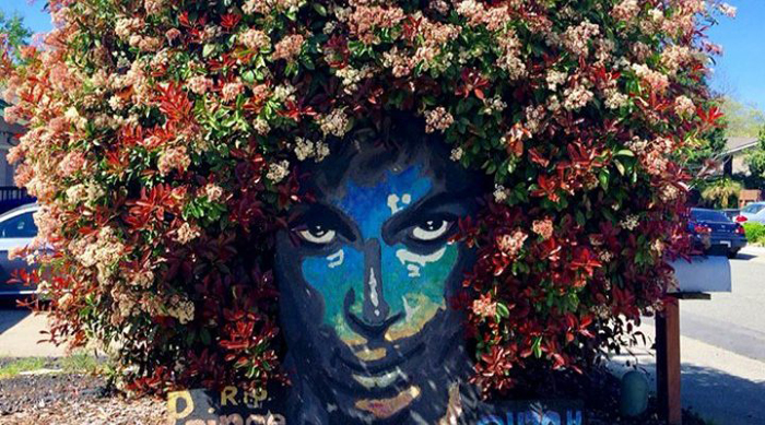 Εδώ και δύο χρόνια, η Κριστίν Στάιν, καλλιτέχνις που ζει στο Σακραμέντο, έχει δημιουργήσει στον κήπο της μια τοιχογραφία – πορτρέτο του Prince. Με έκπληξη ανακάλυψε ότι ο θάμνος που είχε φυτέψει πίσω από το έργο θέριεψε και άνθισε σε μια «κόμη από λουλούδια», σε έναν υπέροχο, όλο αγάπη φόρο τιμής στον Prince.