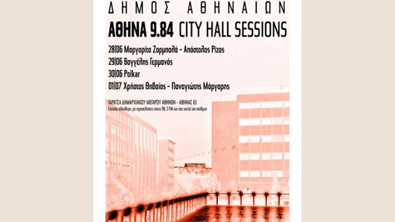 Ο Αθήνα 9,84, ετοίμασε και παρουσιάζει μια σειρά ραδιοφωνικών συναυλιών σε ένα απρόσμενο και πανέμορφο σημείο της πόλης.Το Δημαρχιακό Μέγαρο της Αθήνας ανοίγει τις πόρτες του και μας καλεί να περάσουμε δροσερές μουσικές βραδιές στην φιλόξενη ταράτσα του με θέα την Ακρόπολη και τον Λυκαβηττό.Οι συναυλίες είναι ανοιχτές για το κοινό. Όσοι το επιθυμούν, μπορούν να τις παρακολουθήσουν ζωντανά, με ελεύθερη είσοδο. Αρκεί να συντονιστούν στους 98, 3 FM και στα social media του σταθμού για να κερδίσουν προσκλήσεις.