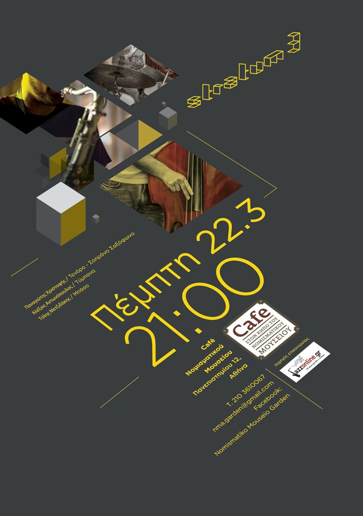 Θα τους απολαύσουμε για μια βραδιά στις 22 Μαρτίου στο café του Νομισματικού Μουσείου στις 9 μ.μ. όπου θα μας παρουσιάσουν τη νέα τους δισκογραφική δουλειά (ένα debut cd με πολύ ωραίο εξώφυλλο) καθώς και νέα κομμάτια.