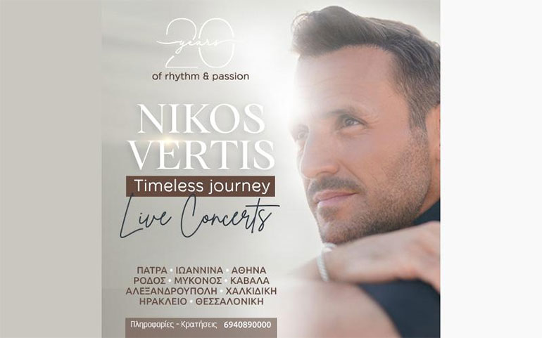 Ο Νίκος Βέρτης, ο καλλιτέχνης που κατάφερε να κάνει τεράστια επιτυχία σε Ελλάδα και εξωτερικό, με πάνω από 300.000 θεατές στις ζωντανές εμφανίσεις του ετησίως! Με συναυλίες sold out στα πιο εντυπωσιακά γήπεδα και θέατρα ανά την υφήλιο όπως το Wembley, το Kodak Theatre, Mirage LasVegas, και πολλά άλλα, έρχεται πλαισιωμένος από την πιο εντυπωσιακή παραγωγή, σε λίγες πόλεις ανά την Ελλάδα και εξωτερικό!! Όποιος δεν έχει δει τον Νίκο Βέρτη LIVE δεν γνωρίζει απλά ποιος είναι!