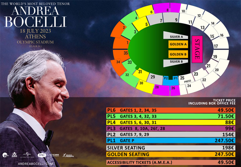 Η αντίστροφη μέτρηση για τη μοναδική συναυλία του μυθικού Andrea Bocelli στο Ολυμπιακό Στάδιο της Αθήνας στις 18 Ιουλίου, έχει ήδη αρχίσει! Για ΠΡΩΤΗ ΦΟΡΑ, το ευρύ κοινό έχει την ευκαιρία να απολαύσει και να μαγευτεί από τη φωνή του, το ήθος και το σκηνικό του ταμπεραμέντο.