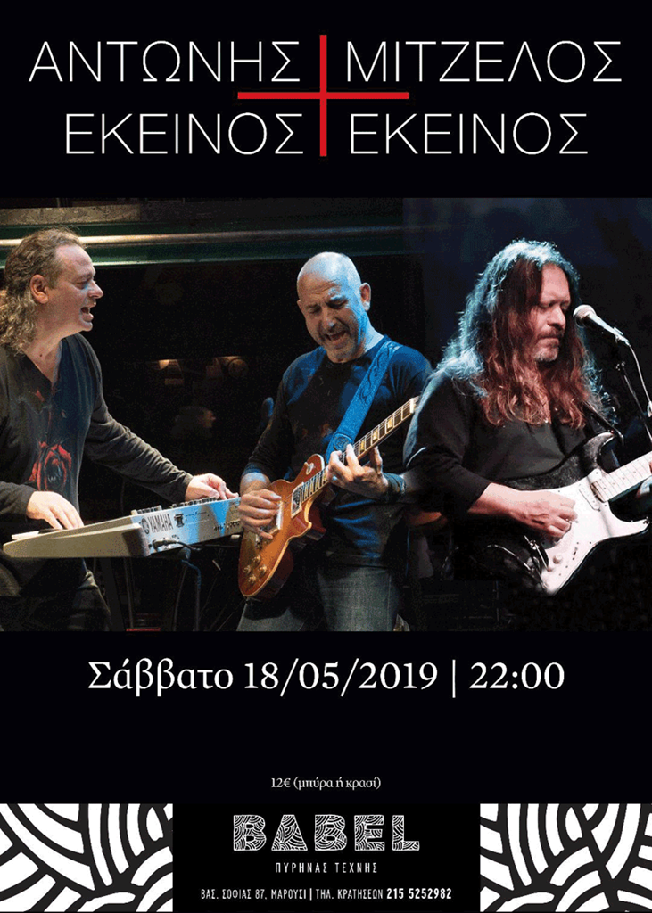 O μοναδικός δημιουργός και βιρτουόζος της κιθάρας Aντώνης Μιτζέλος επιστρέφει στη Babel παρέα με τους αγαπημένους μας Εκείνος και Eκείνος το Σάββατο 18 Μαΐου για μια μοναδική παράσταση!