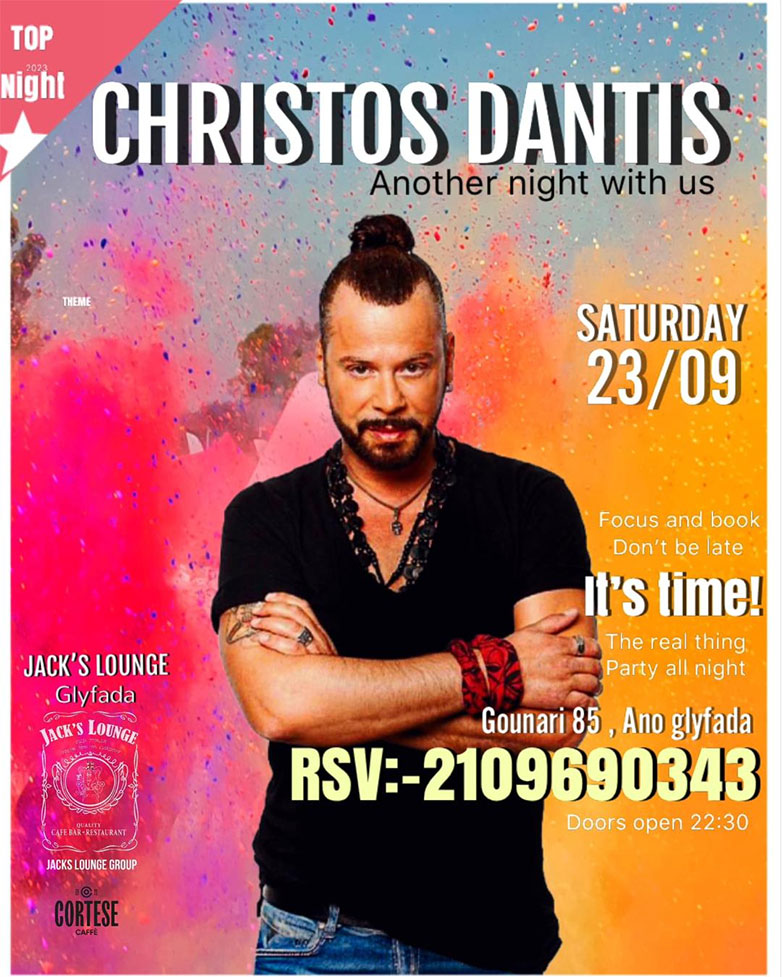 Ο Χρήστος Δάντης, ένας από τους καλύτερους performer που για περισσότερα από 7 χρόνια άφησε το στίγμα του στον δημοφιλή χώρο της Γλυφάδας, επιστρέφει στο Jack’s lounge για να μας παρουσιάσει το ανανεωμένο του πρόγραμμα.