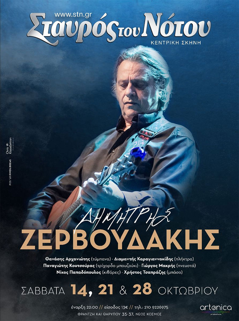 Ο Δημήτρης Ζερβουδάκης, στην έναρξη της χειμερινής του περιοδείας, εμφανίζεται στην Κεντρική Σκηνή του Σταυρού του Νότου για τρεις παραστάσεις, τα Σάββατα 14, 21 και 28 Οκτωβρίου.