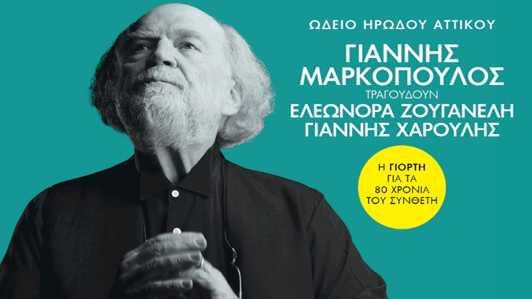 Ο Γιάννης Μαρκόπουλος θα γιορτάσει τα 80 του χρόνια με μία μεγάλη συναυλία στο Ηρώδειο, την Παρασκευή 28 Ιουνίου.