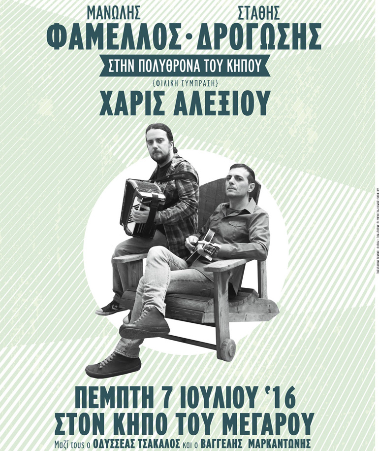 Ο Μανώλης Φάμελλος και ο Στάθης Δρογώσης, τραγουδοποιοί – φίλοι και …ιστορικοί σύμμαχοι από τον περασμένο αιώνα, δίνουν ραντεβού τη Πέμπτη 7 Ιουλίου στον Κήπο του Μεγάρου και μας προσκαλούν στη δική τους γιορτή της μουσικής.