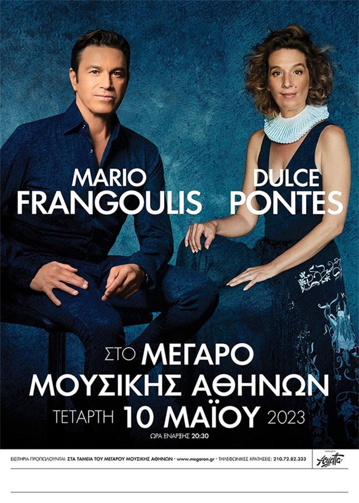 Ο αισθαντικός διεθνής τενόρος Μάριος Φραγκούλης και η αγαπημένη ντίβα του ελληνικού κοινού από την Πορτογαλία Dulce Pontes έρχονται την Τρίτη 9 και την Τετάρτη 10 Μαΐου στο Μέγαρο Μουσικής για να μας οδηγήσουν σε μια μαγευτική μουσική διαδρομή στη Μεσόγειο με τραγούδια από τα λιμάνια του κόσμου.